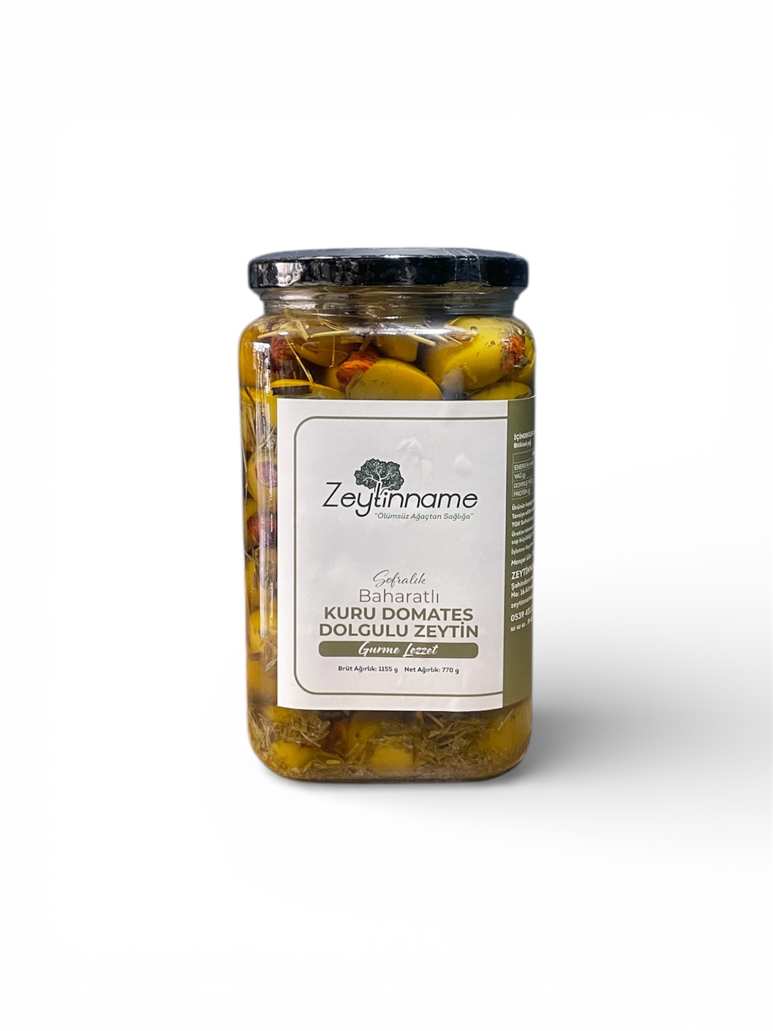 İçindekiler; Çekirdeksiz zeytin, bitkisel yağ, kuru domates, baharat.